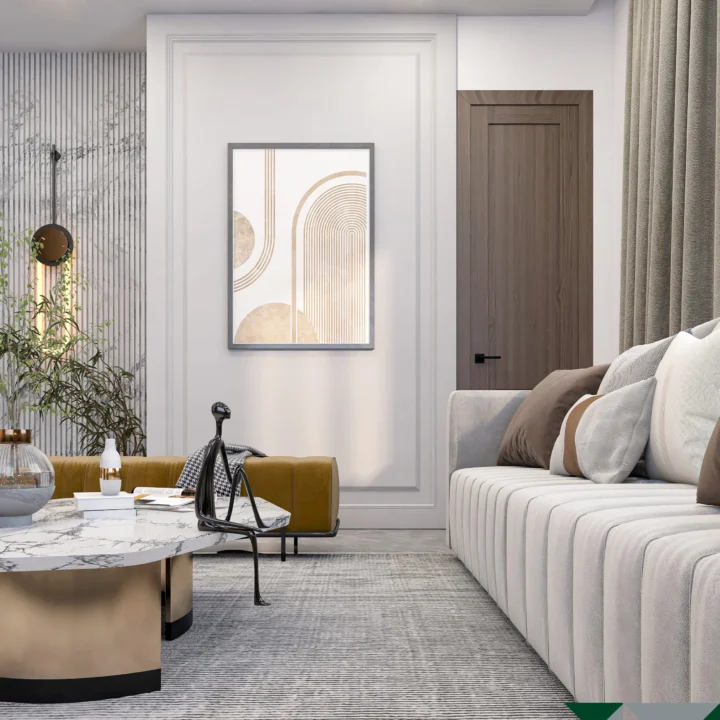 These interiors showcase a refined modern design, blending simplicity with sophistication. Soft, neutral tones create a serene and inviting atmosphere, while clean lines and balanced proportions bring a sense of harmony to the space.