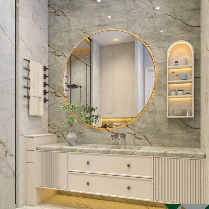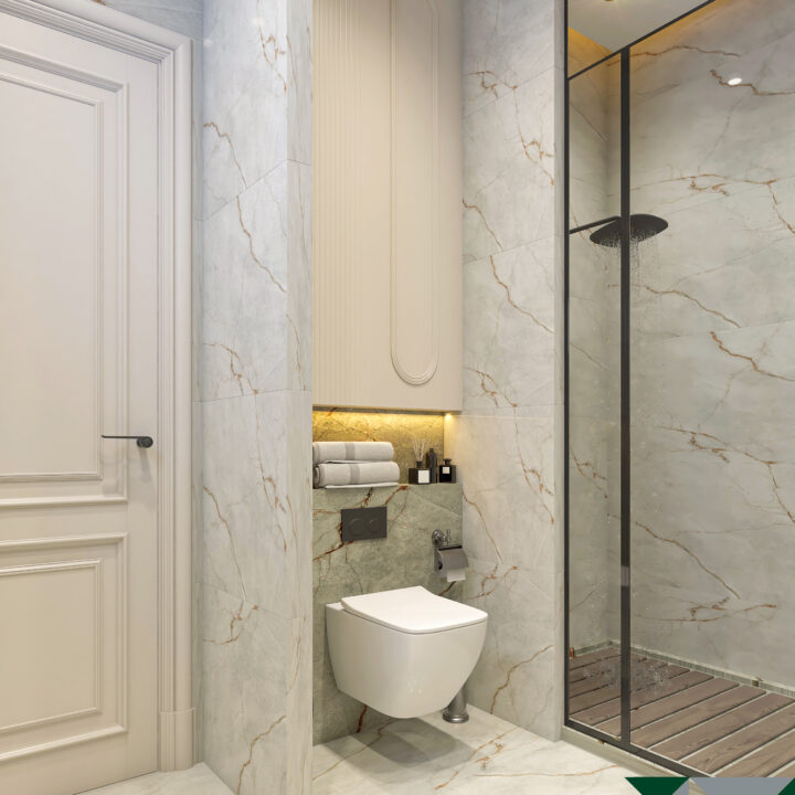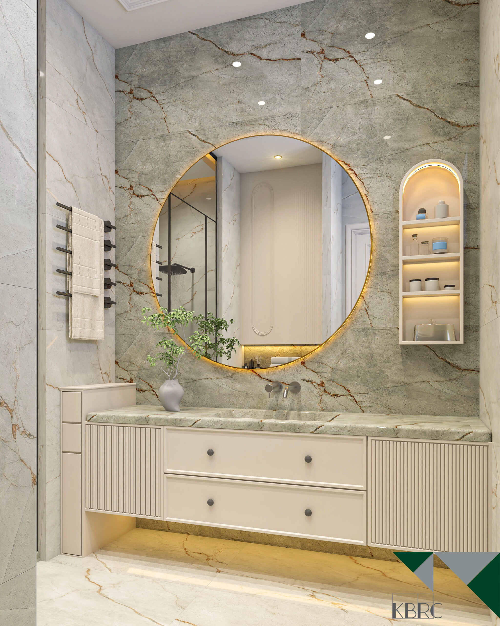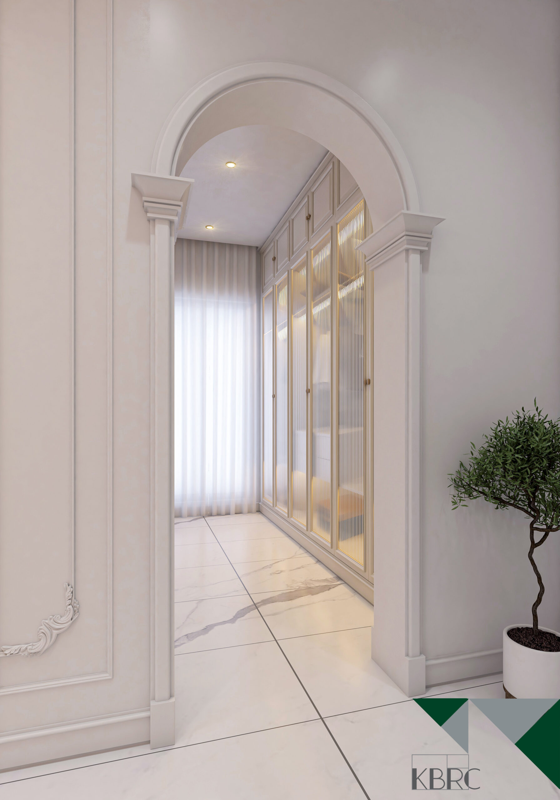 This bedroom interior brings a timeless touch of classical elegance with a modern twist. The soft neutral palette creates a serene environment, while intricate wall details and luxurious textures elevate the space. Elegant lighting fixtures and high-end finishes add a sense of grandeur, making it a perfect retreat that blends comfort with sophistication. Subtle decorative accents and carefully chosen furnishings enhance the refined atmosphere, while the balance of modern functionality and classical charm ensures both beauty and practicality. The result is a restful sanctuary that feels graceful, inviting, and effortlessly luxurious.